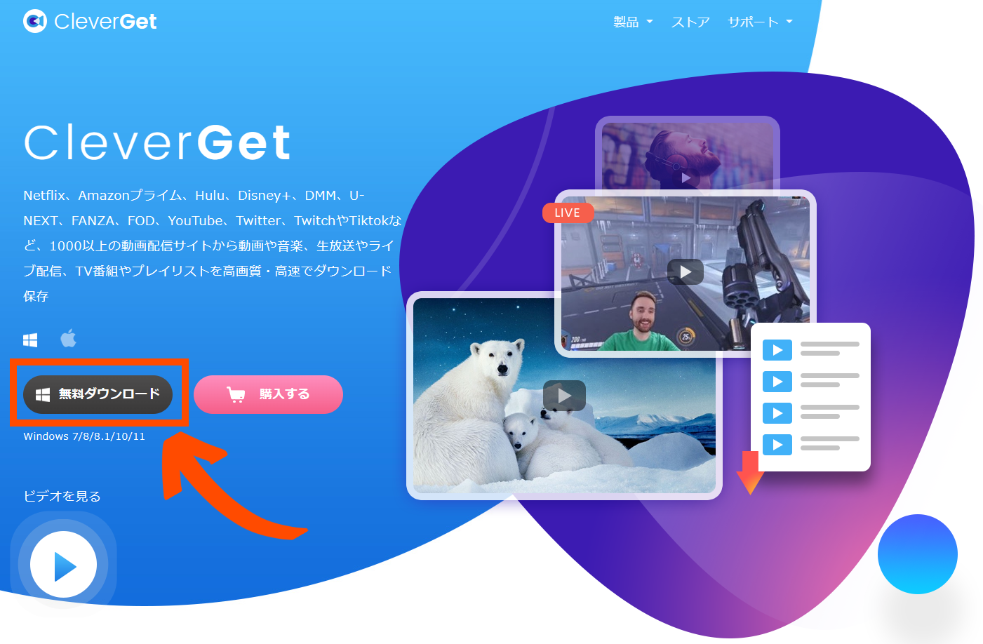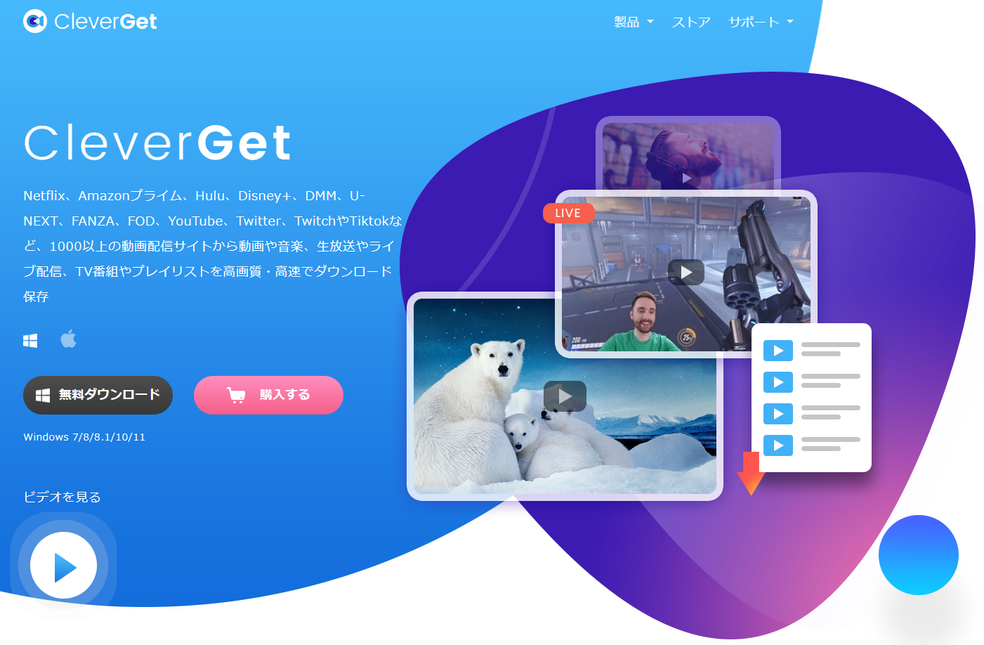 CleverGetの公式ホームページよりインストーラーを”ダウンロード”を押します。