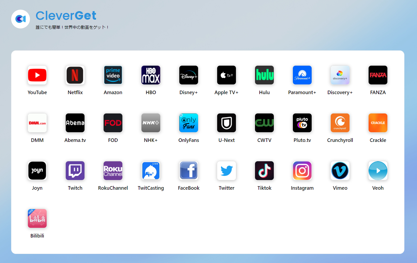 冒頭でも言いましたが、CleverGetではさまざまな動画サイトやストリーミングサービスからダウンロードすることができます。