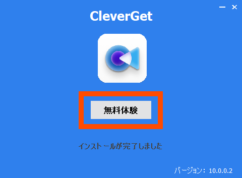 “インストールが完了しました”の表示になったら、”無料体験”をクリック