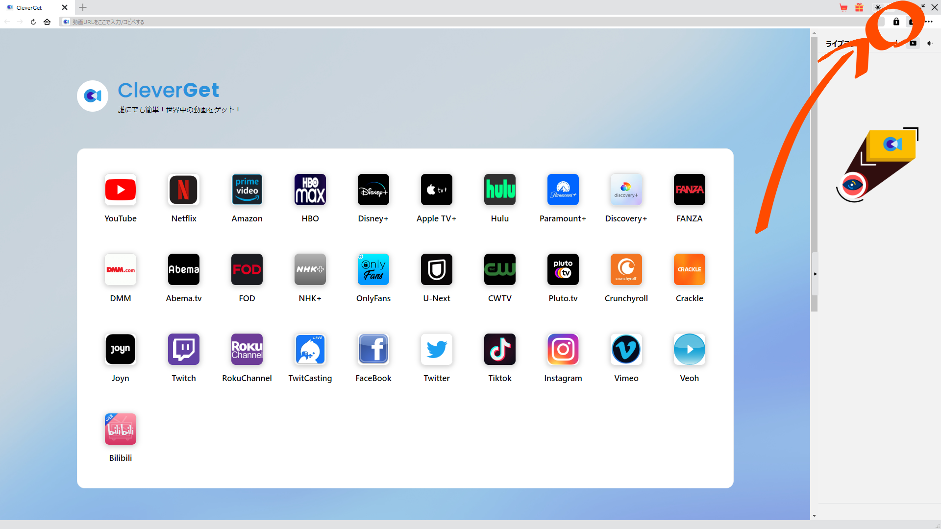 CleverGetを起動し、最初の画面左上にある鍵アイコンをクリックします。