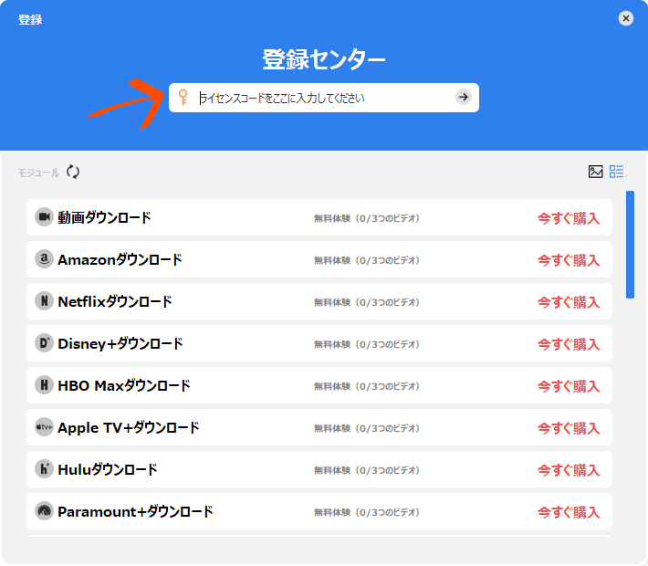 ライセンスコードを入力すると、対応したモジュールが使用可能になります。