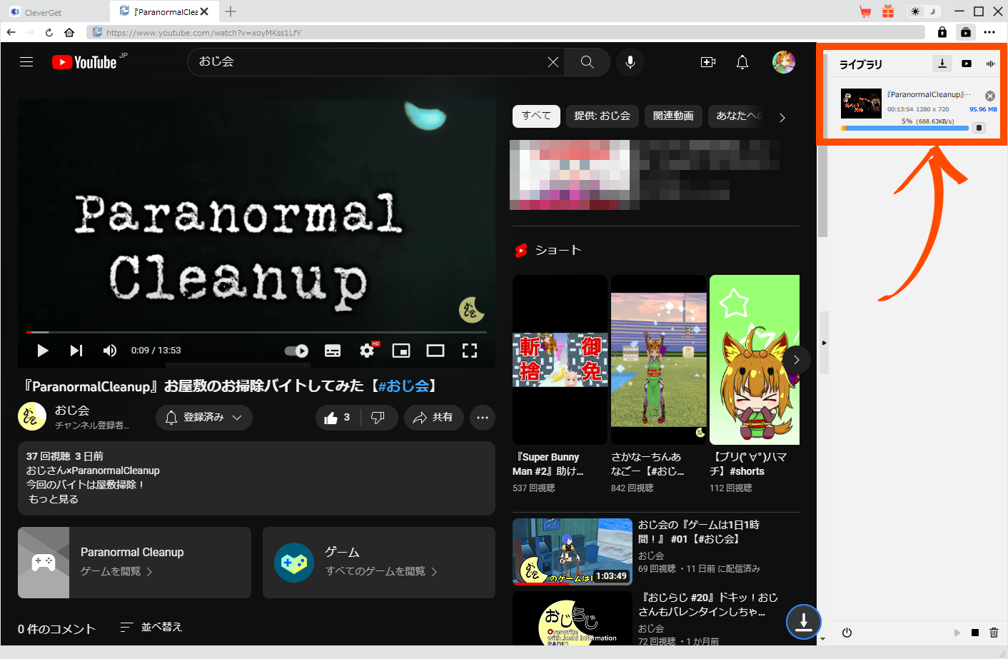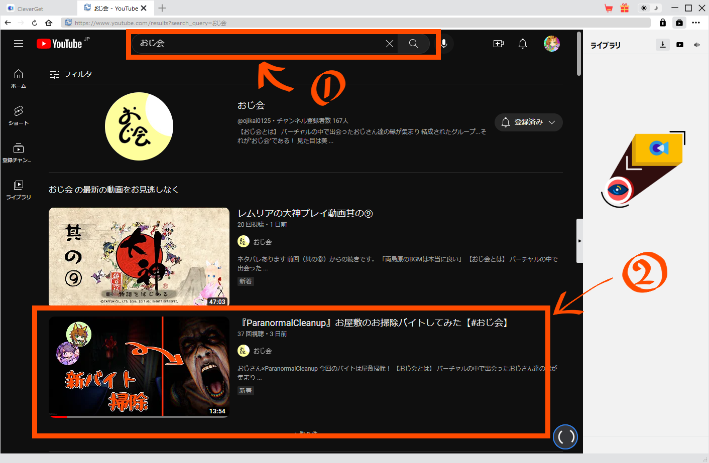 ①保存フォルダを開く(“ビデオ”→”CleverGet”→”Video”フォルダに保存されます)