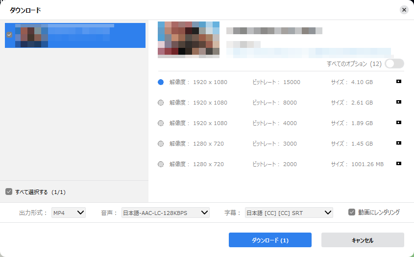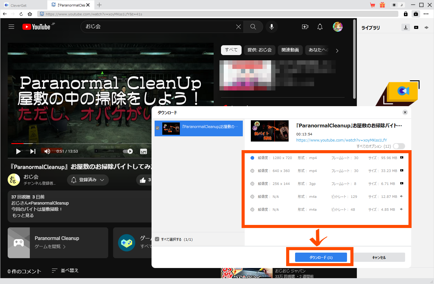 動画を検出すると、ダウンロードウィンドウが表示されます。