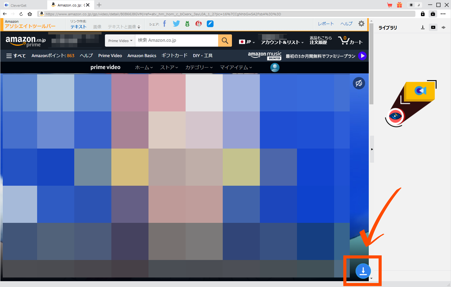 “ダウンロード”のボタンを押すことで、画面右側のライブラリに登録されダウンロード状況を確認することができます。