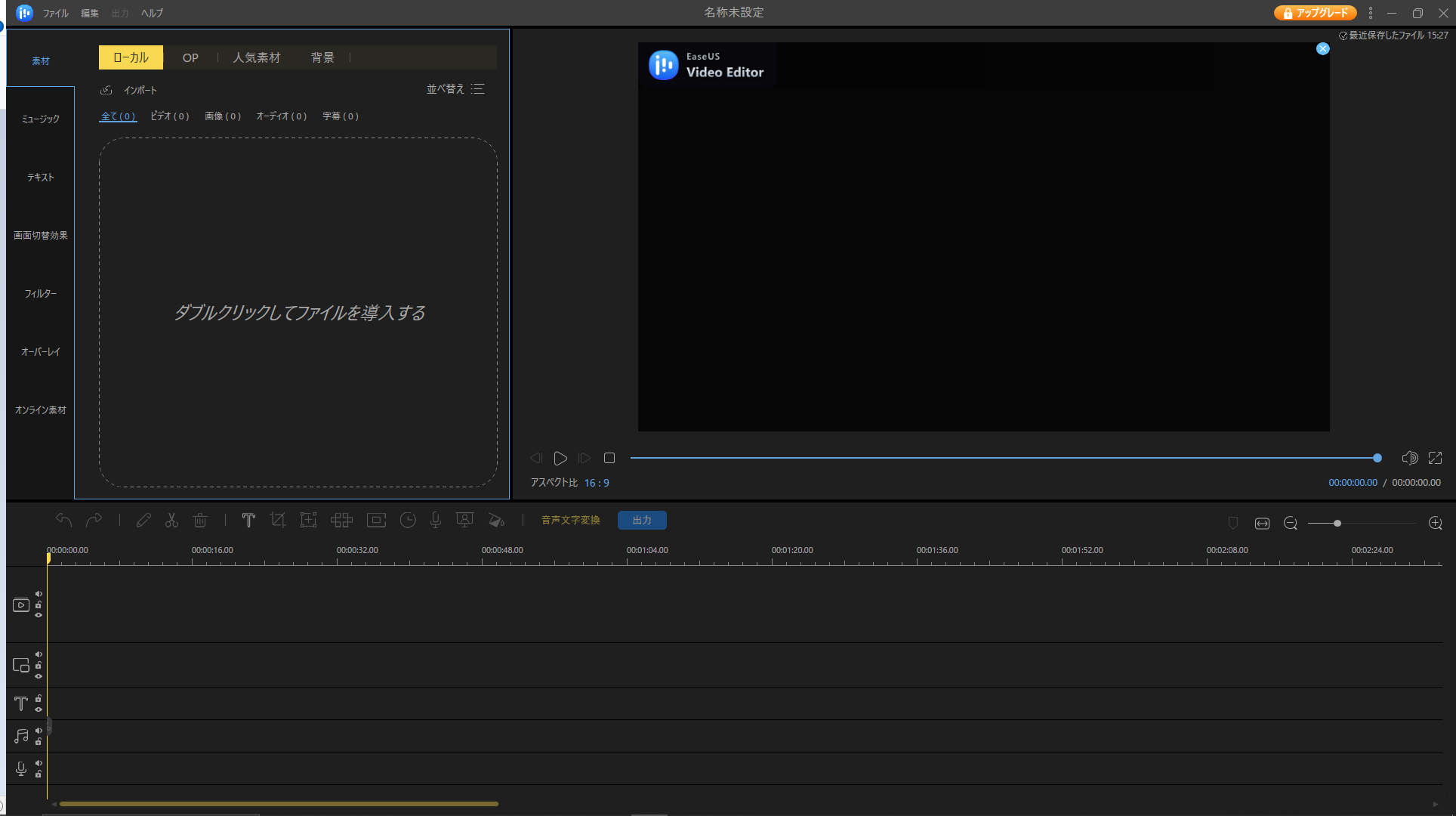“EaseUS Video Editor”を起動するとプロジェクト作成画面が表示されます。