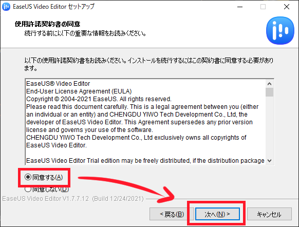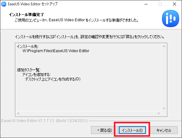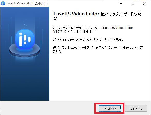 EaseUS Video Editorの公式ホームページよりインストーラをダウンロードする。