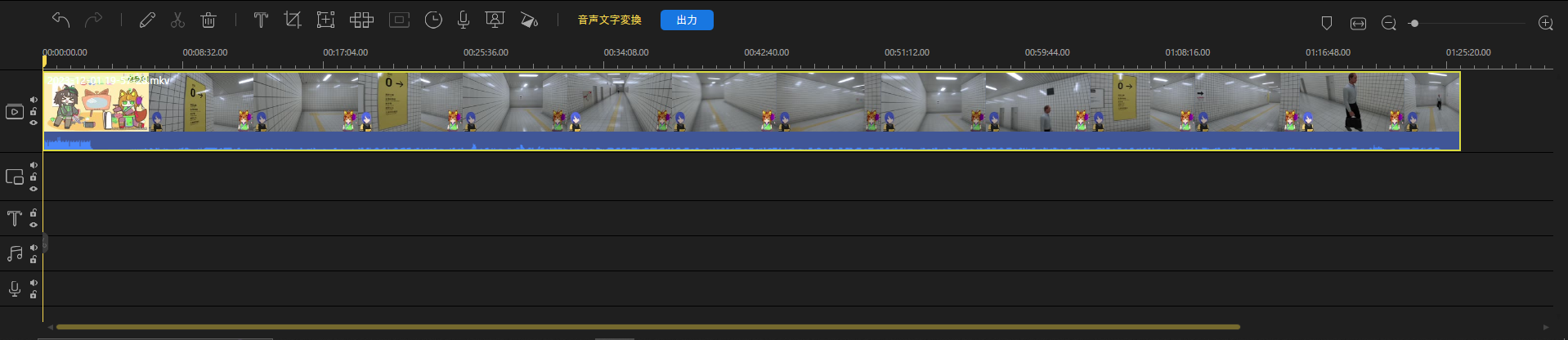 ツールバー内にあるアイコンを押すことで黄色のシークバー上にテキストや分割・モザイクといった画面処理を乗せることができます。