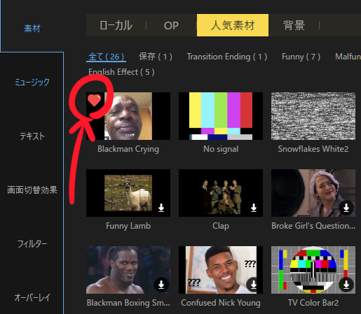 素材タブの中にも人気素材グループがあり、その中から選んで追加するのもありだと思います。