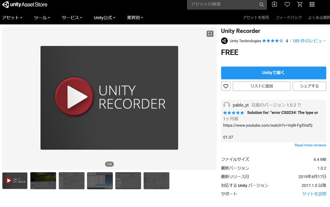 Unity RecorderはUnity Asset Storeでフリーソフトにて公開されております。