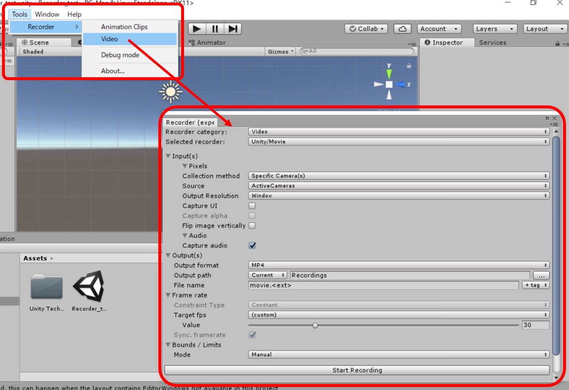 ここではUnity Recorderをインポート・撮影設定をしていきます。