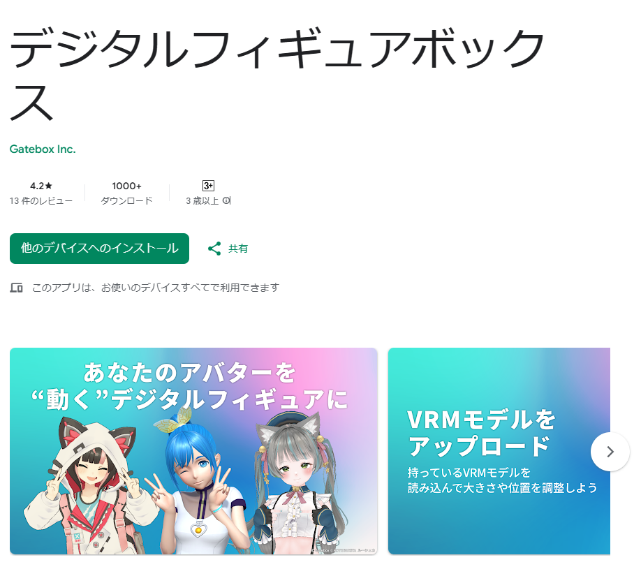スマホにインストールすることにより3Dモデル(VRM)を読み込ませ、表示・動作させることができるアプリケーション