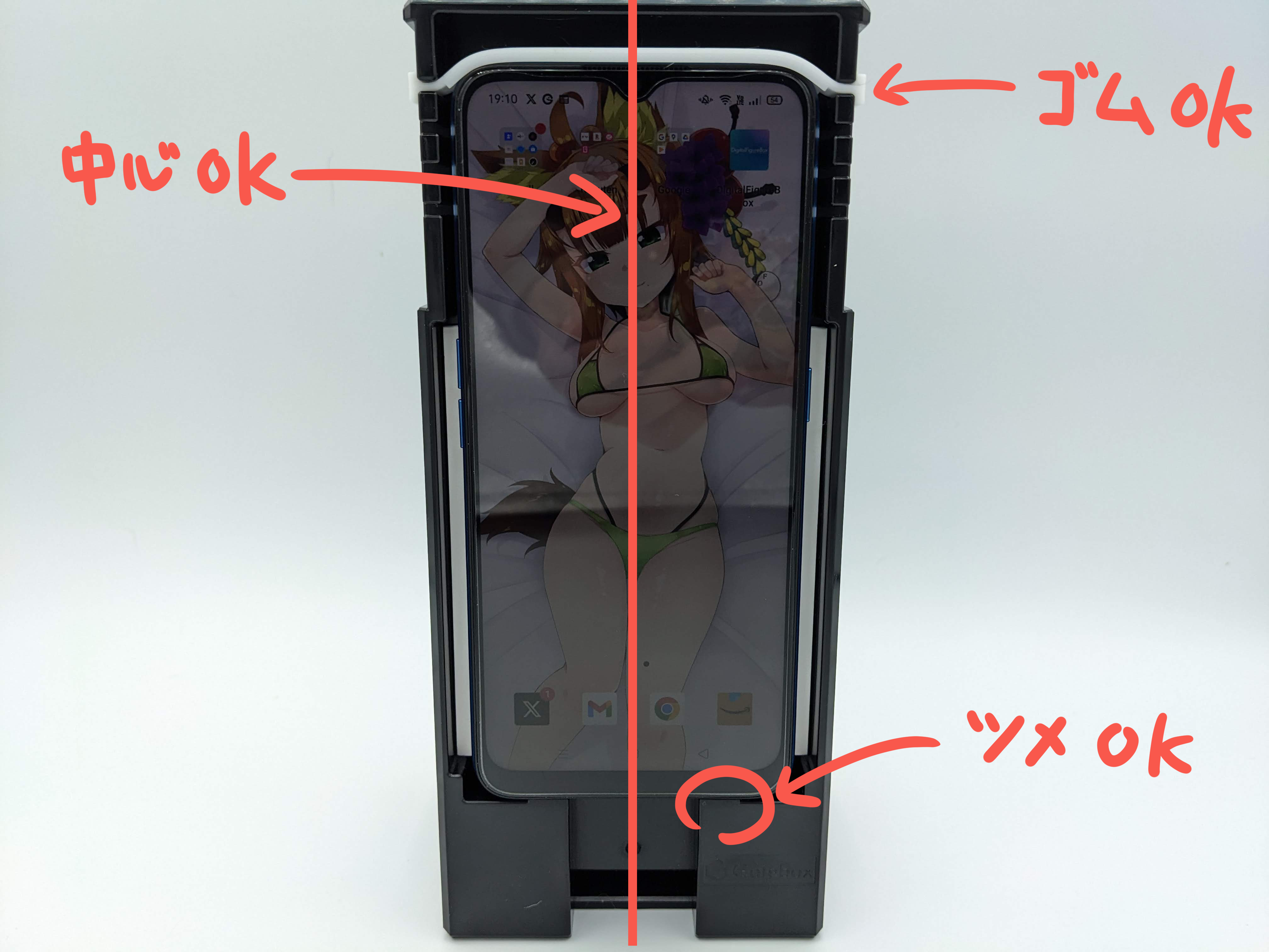 ウチバコにスマホを入れる際にスマホの画面とウチバコの縁の高さを揃える必要があります。