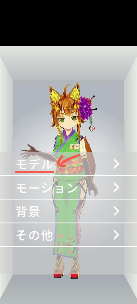 メニューからモーションや背景を選択することで、それぞれ変更ができるようになっています。
