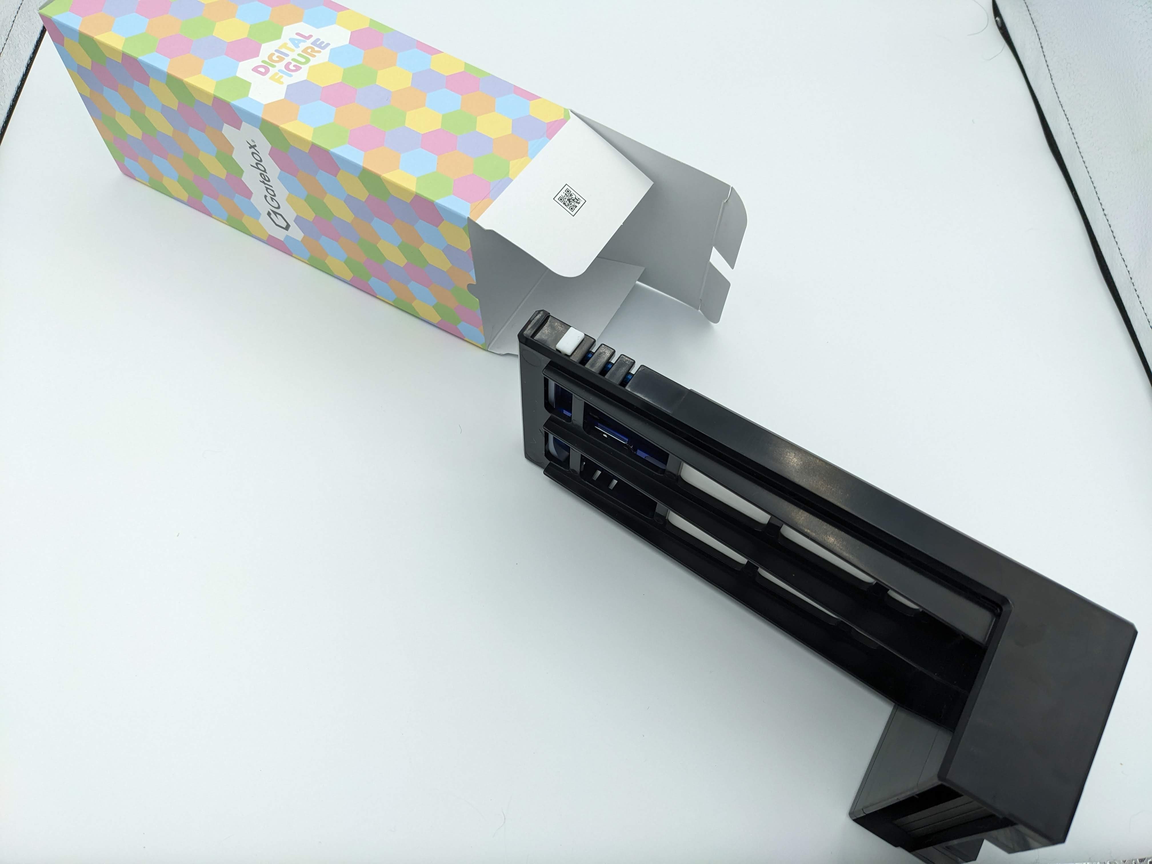 透明な化粧箱にデジタルフィギュアボックスと付属物が入っております。