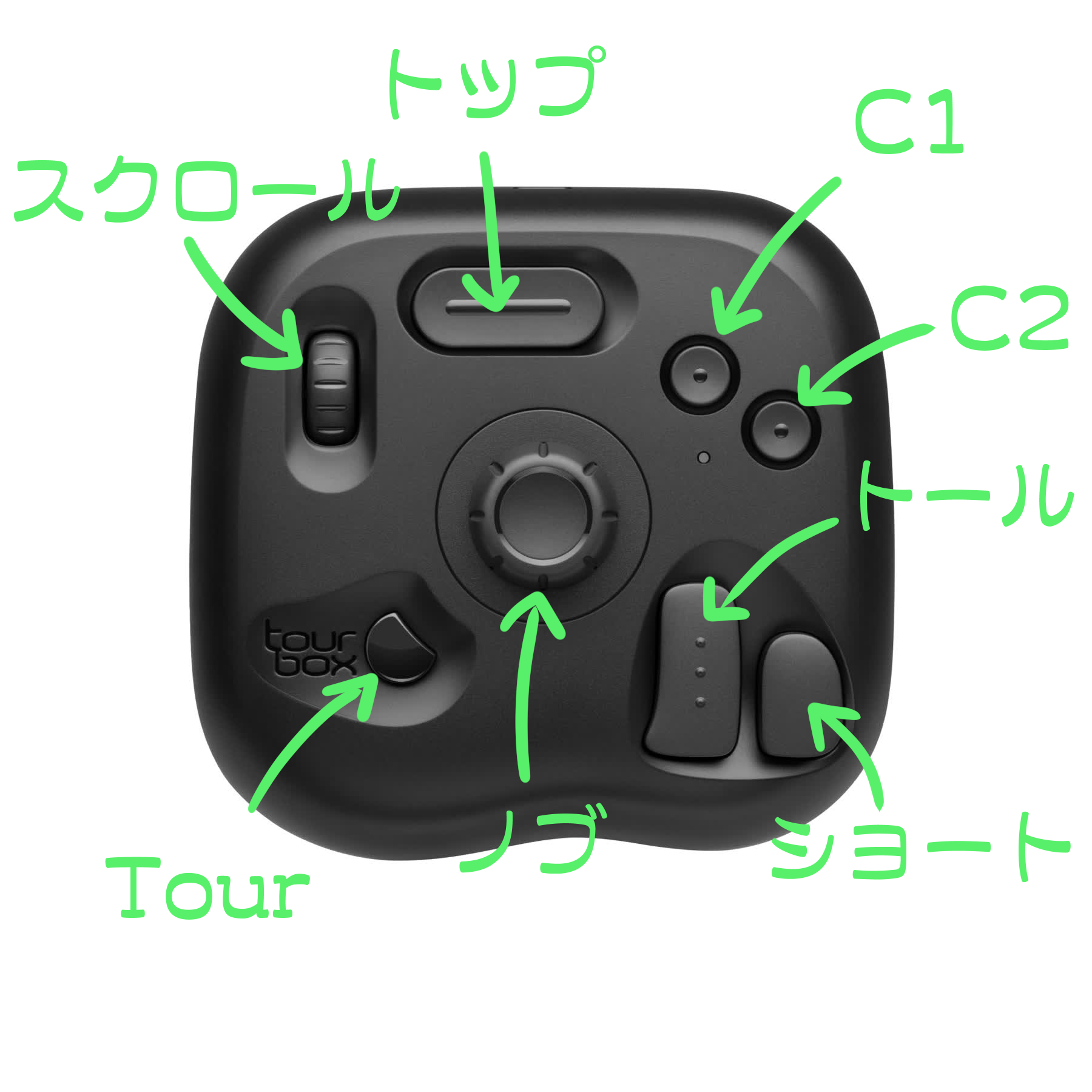 TourBox NEOやEliteに比べてボタン数が減ってできる操作が減るんじゃないかな?