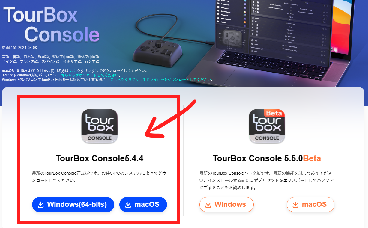 TourBox製品を使うためには専用ソフトの”TourBox Console”が必要になります。