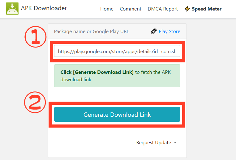 次にAPK Downloaderのサイトに行き、先ほどコピーしたURLを貼ります。