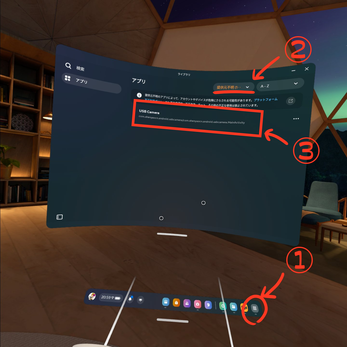 ②”USB camera”を”SideQuest”経由でインストール