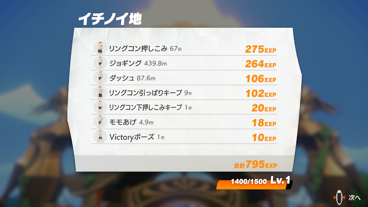 また、ステージごとに消費カロリーや運動回数がわかる画面が出てくれるのでとてもわかりやすい!!