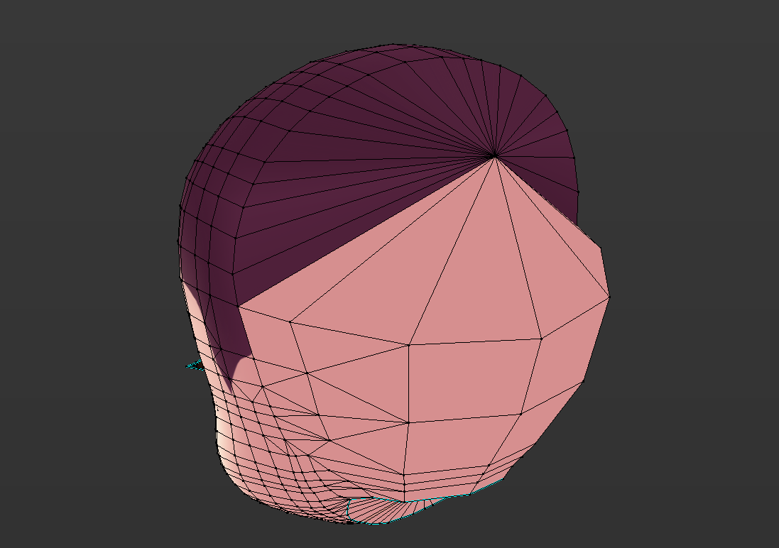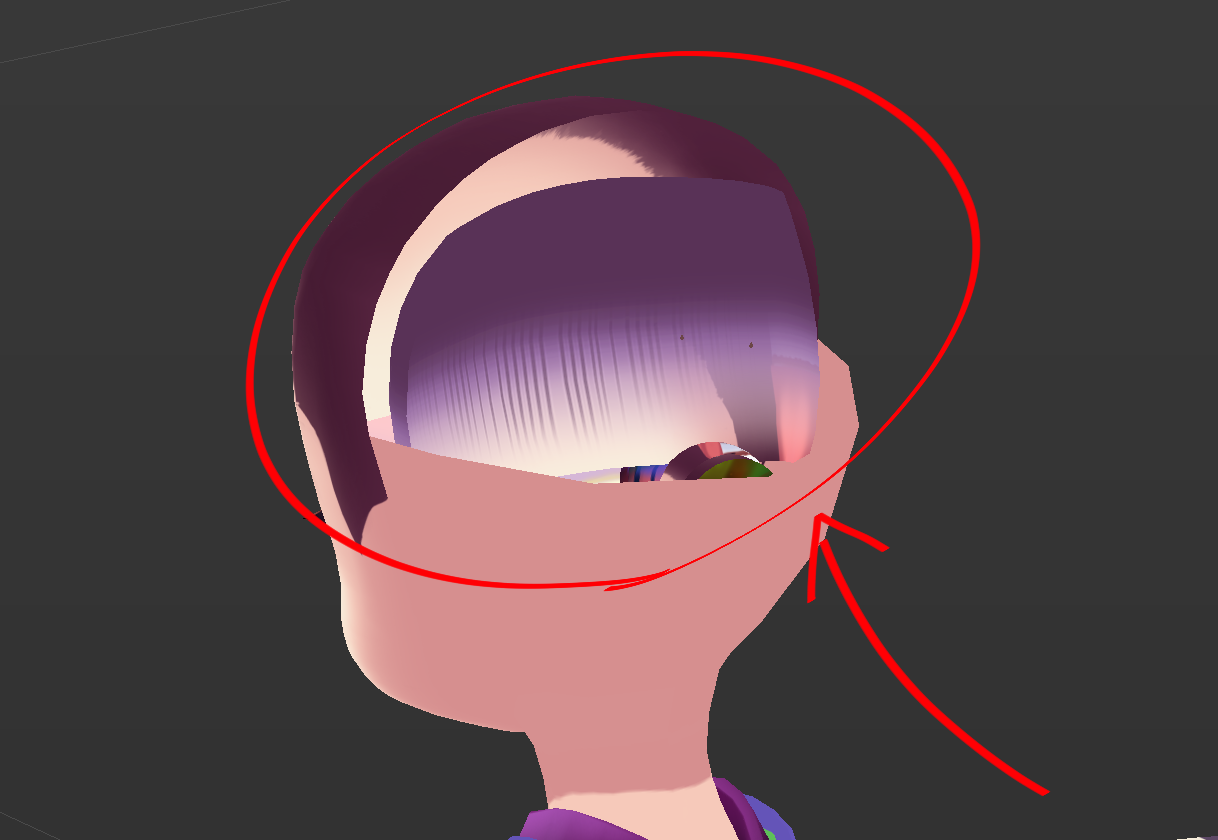 (後頭部のポリゴンがないため髪オブジェクトを外すと顔内部のメッシュが見える状態)