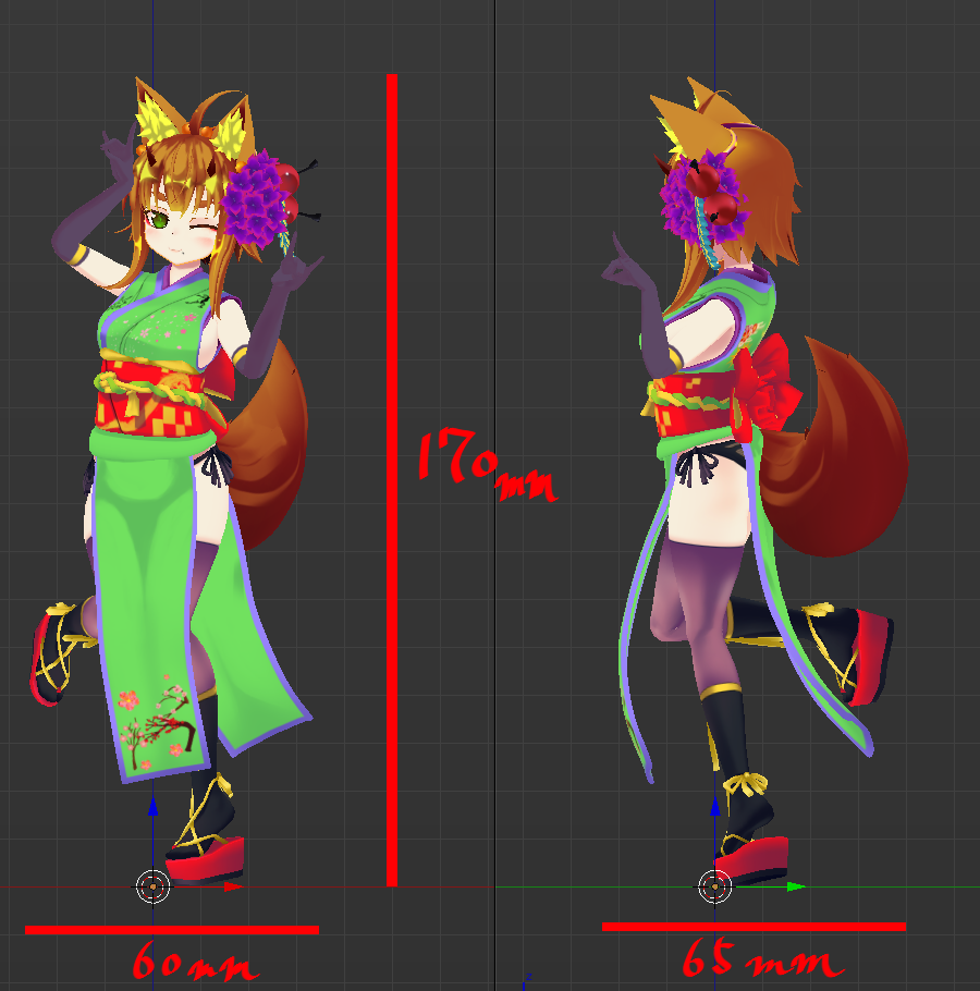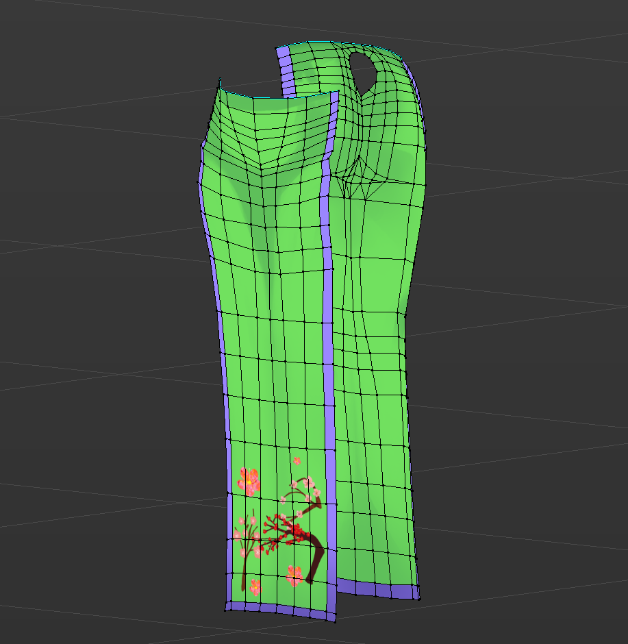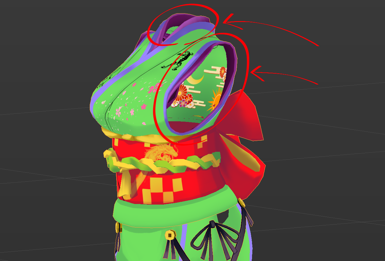 (他にも腰のリボンや下駄の紐など、板ポリゴンの部分を厚み付けしました)