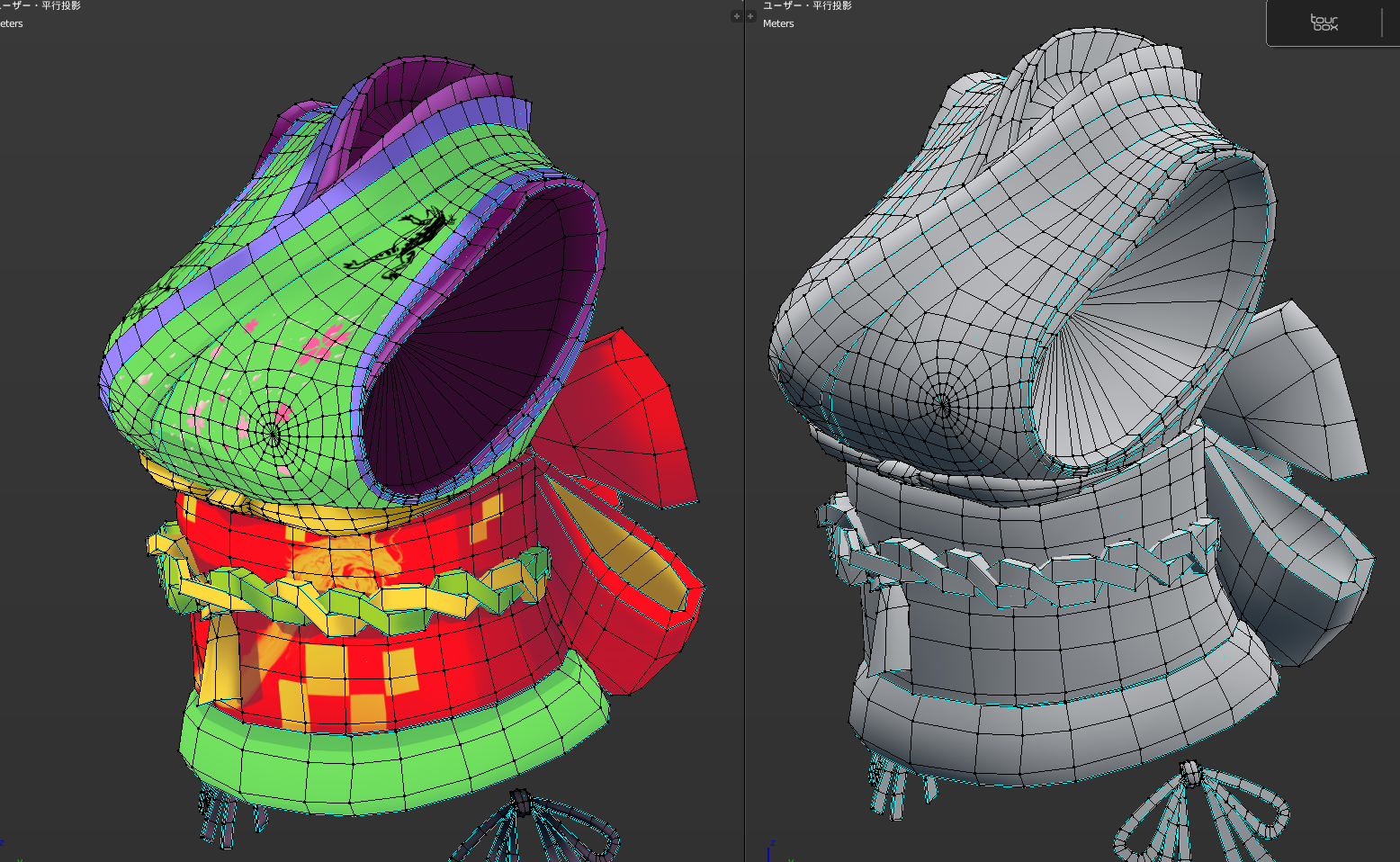 ③ローポリ気味でエッジが少し目立ってしまうところもあり、これは3Dモデル調整時にもう少しハイポリ化してなめらかになるようにすればよかったかなと思いました。