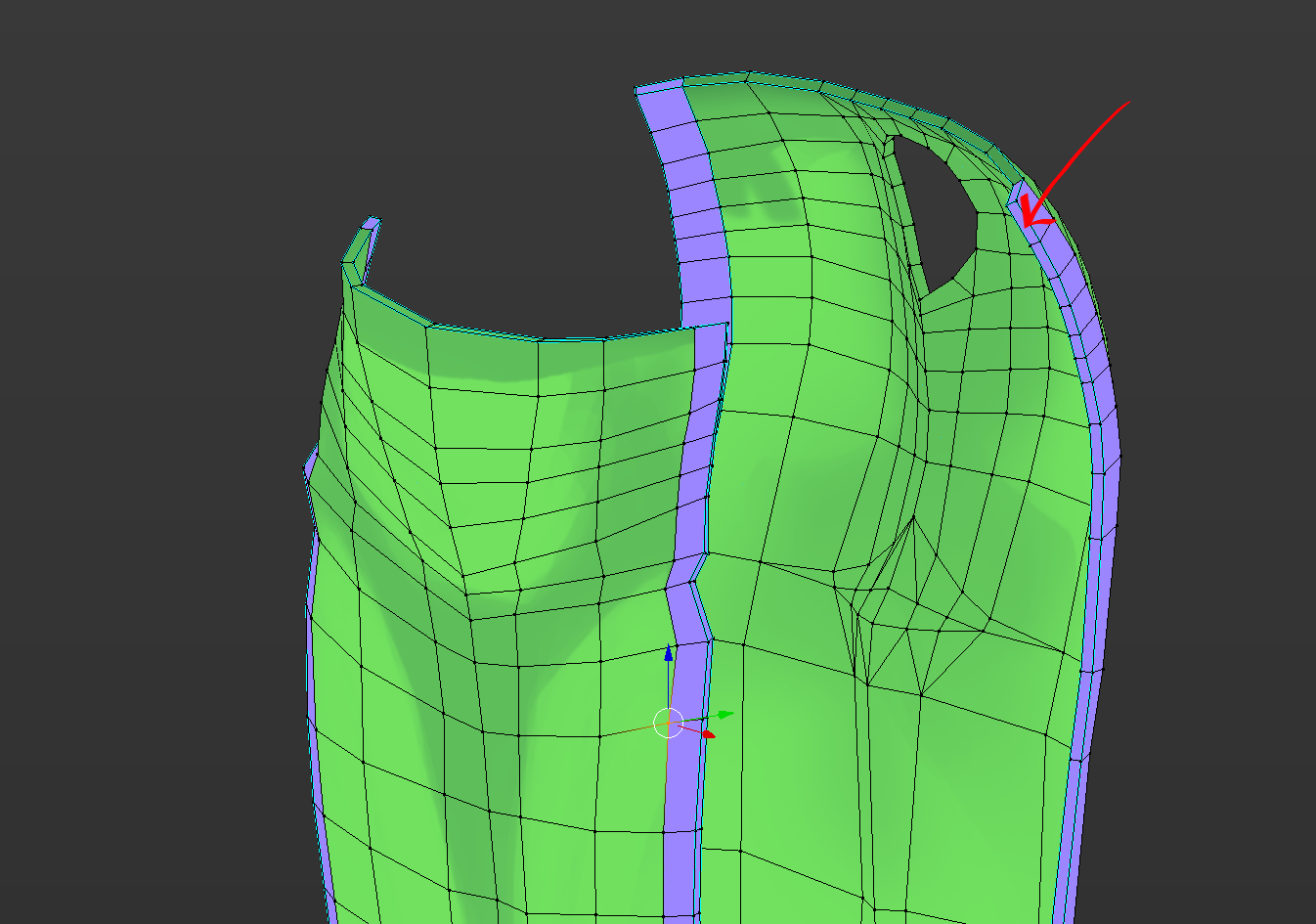 普段見えない箇所になりポリゴンがない後頭部や衣装の穴部分を修正していきます。