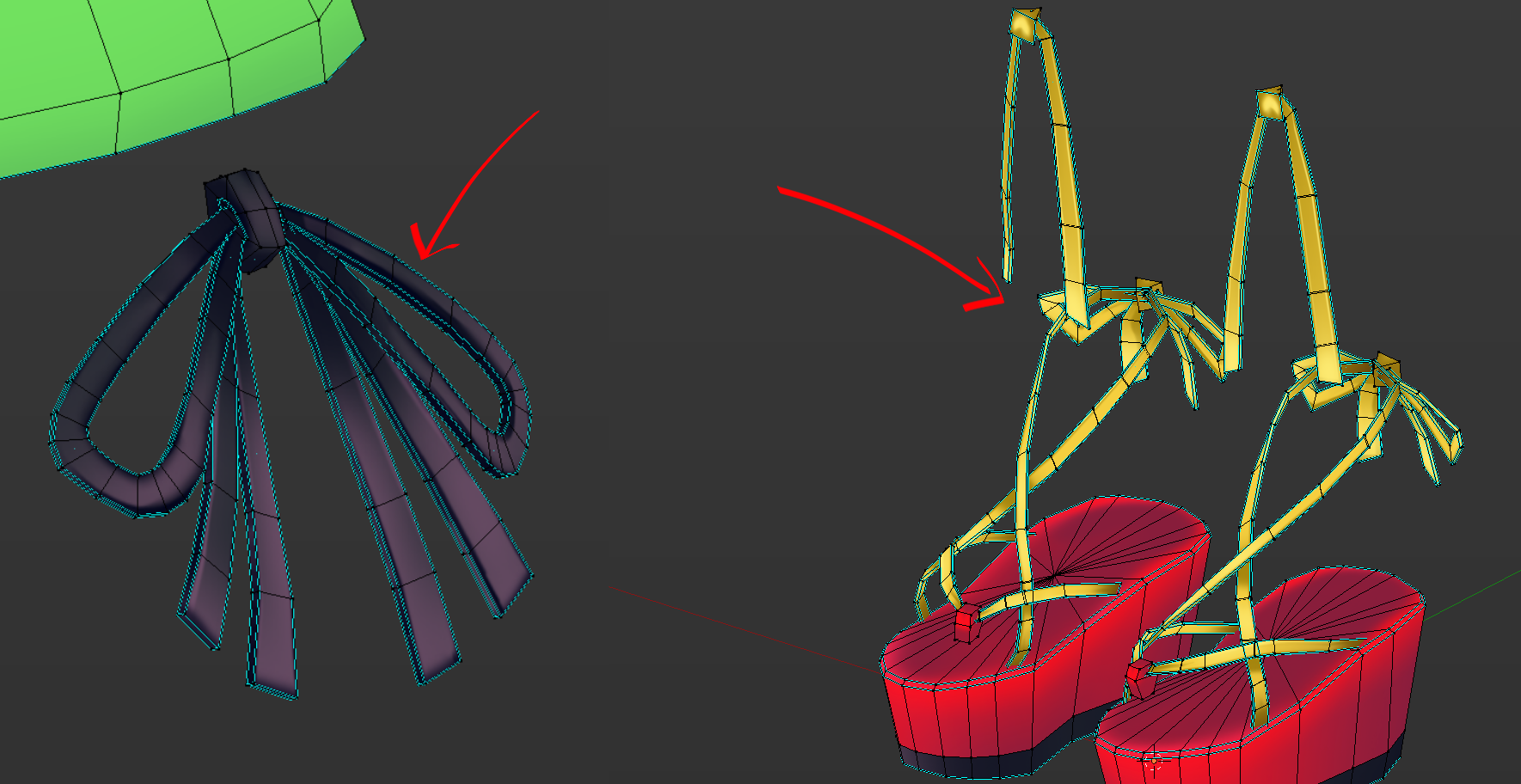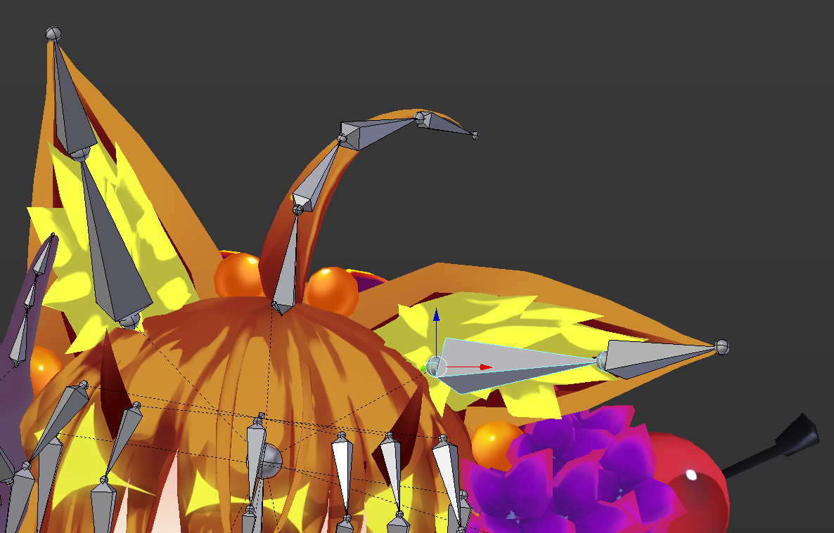 (衣装の裾も板ポリゴンでできているため厚み付けをしていきます)