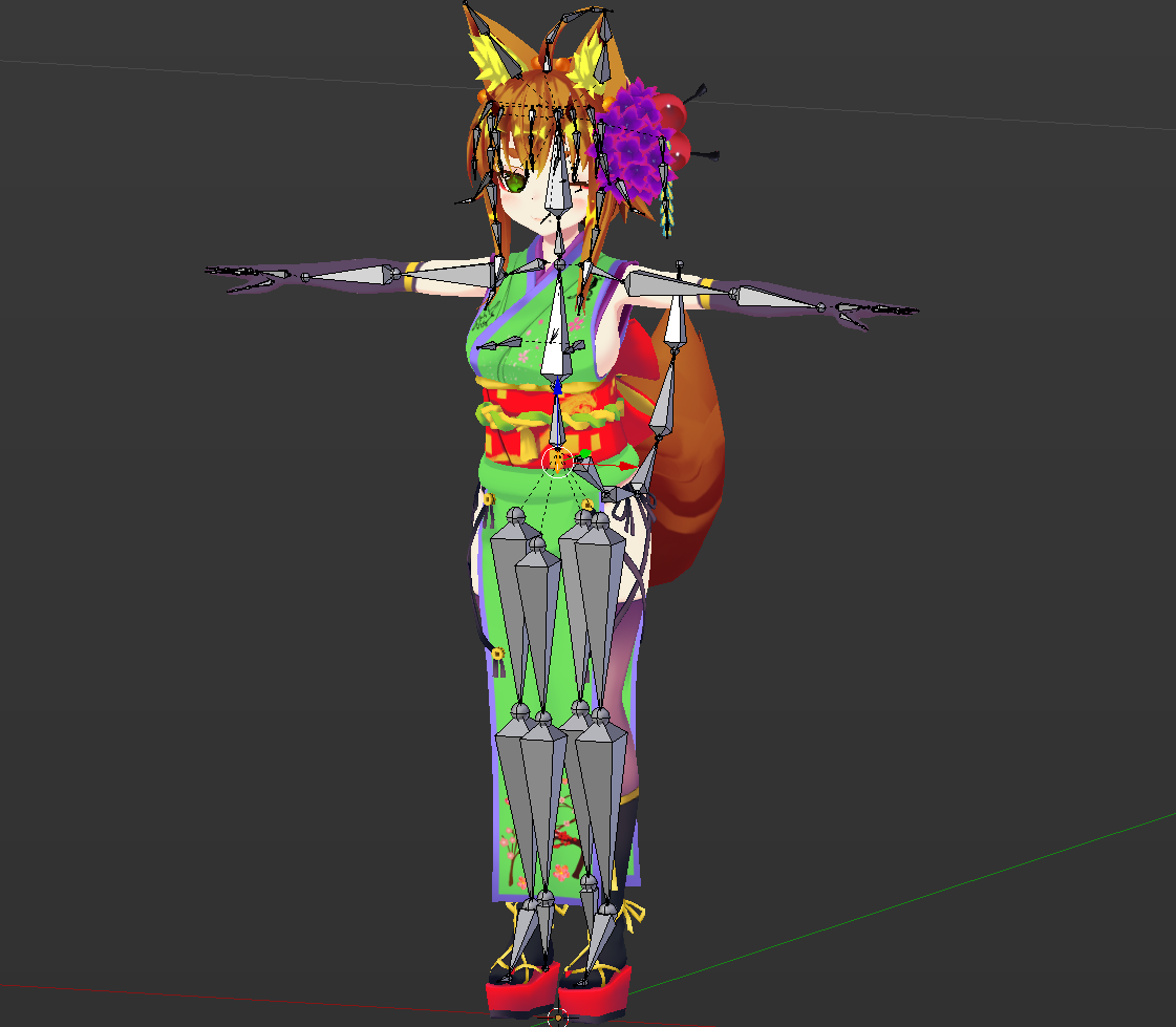 ちなみにボーン表示をさせるとこんな感じ(ボーンは八面体の形をしているもの)
