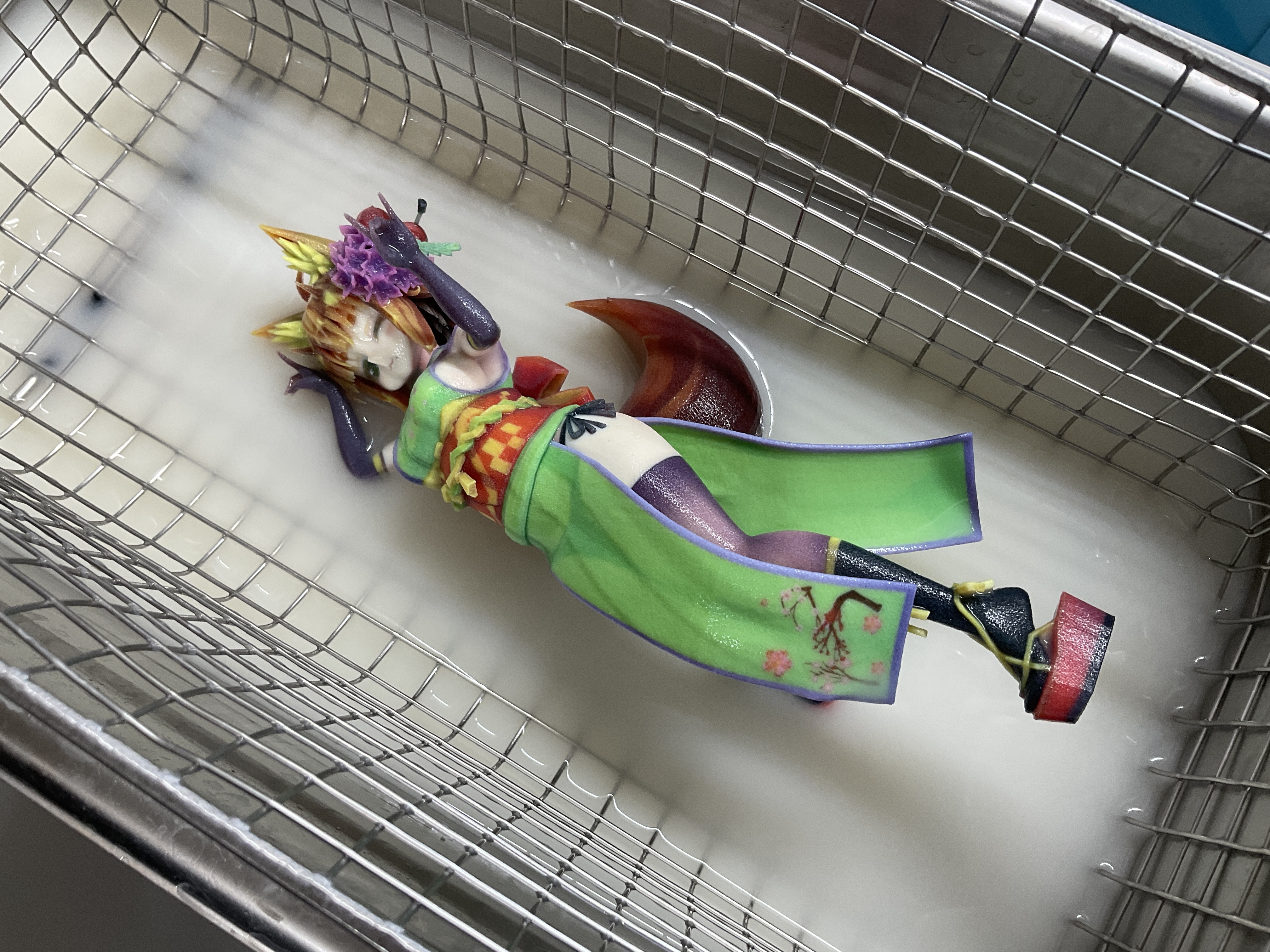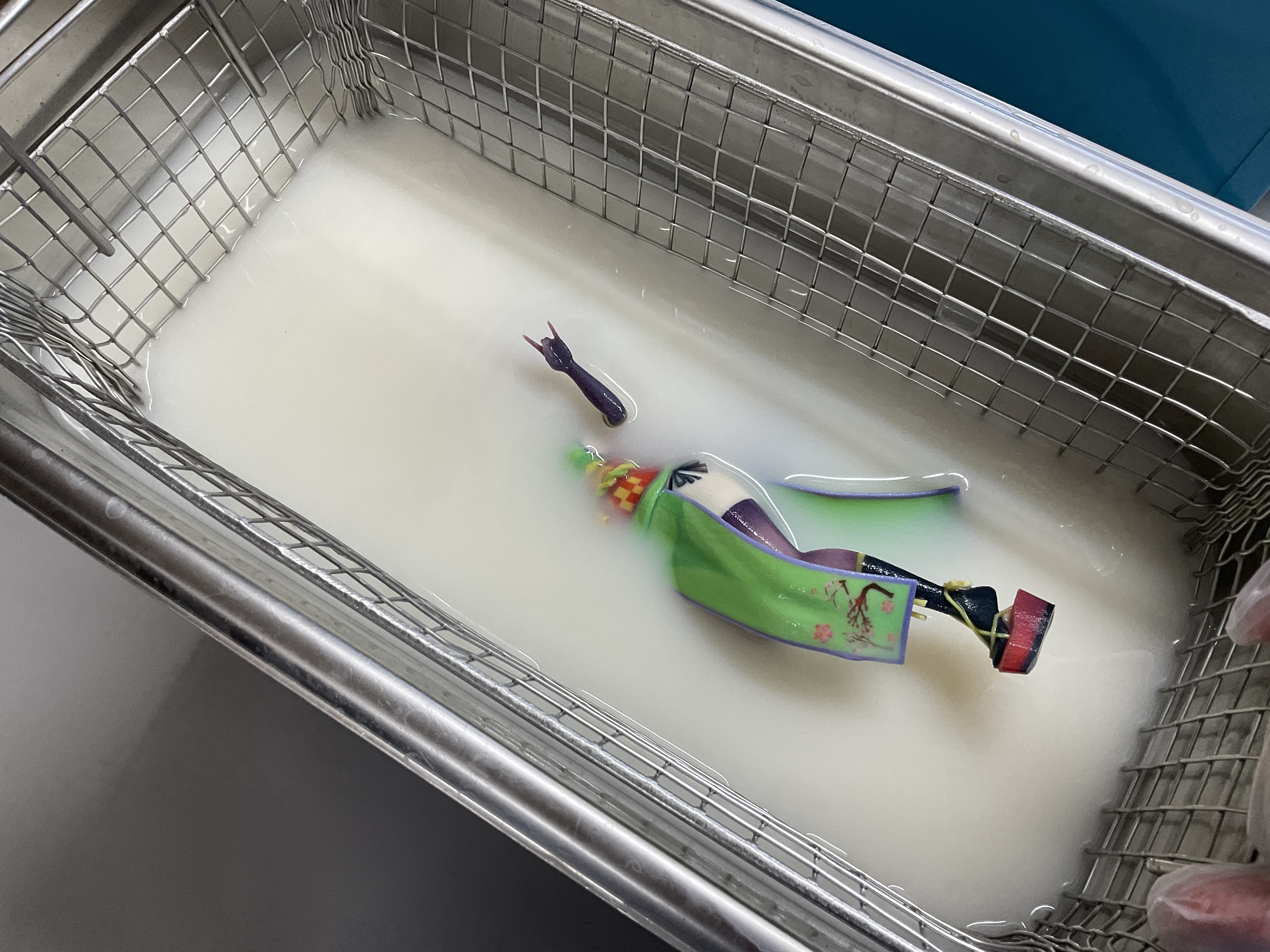 今回のフィギュア化においては1日水に浸した後、超音波洗浄機を使用し仕上げていただきました。