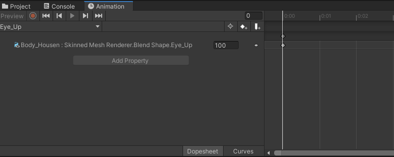 アニメーションクリップの中身はこんな感じで、Idleでは上下左右のシェイプキーの値が全部0の状態で入っております。