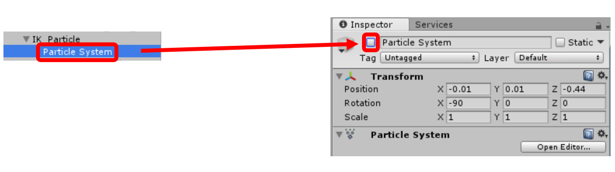 IK_Particleフォルダ以下に作成された”Particle System”を選択