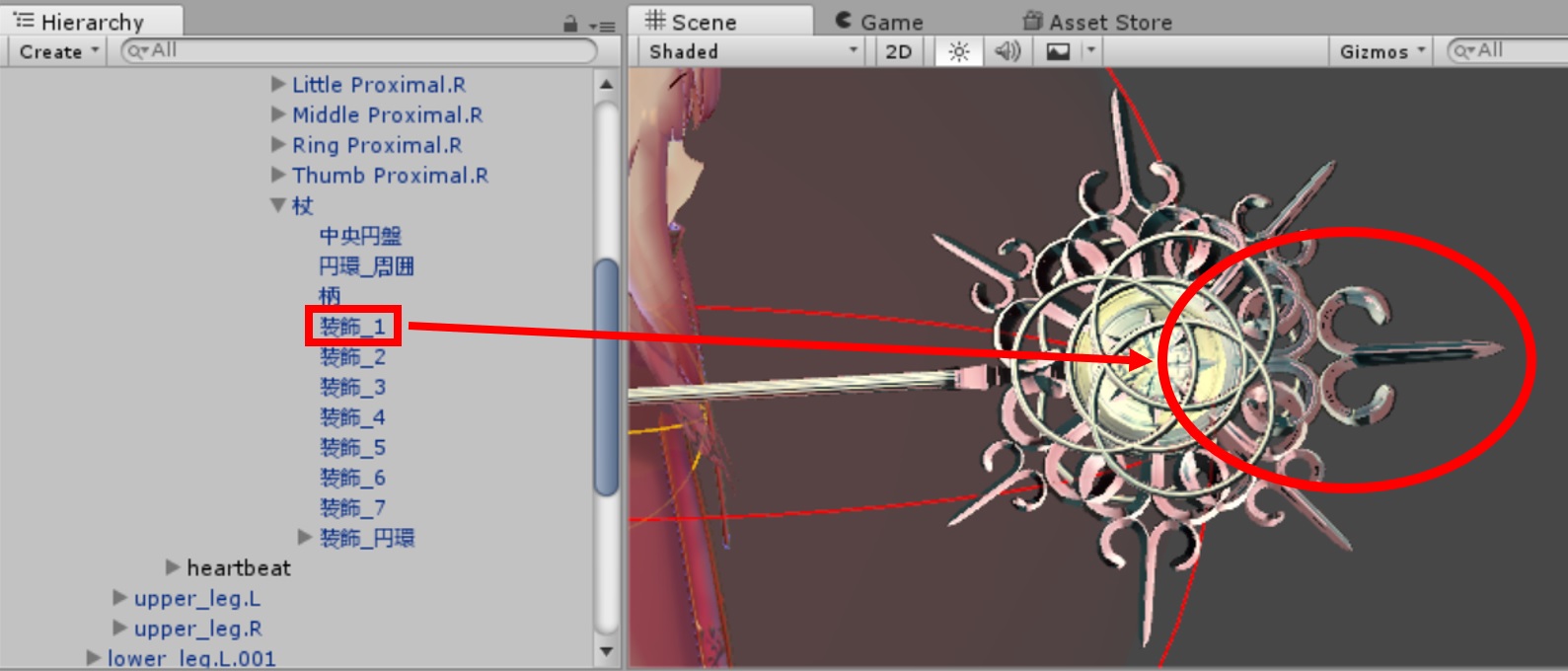 今回はこの杖の先端部から軌跡を描けるように設定していきます♪♪