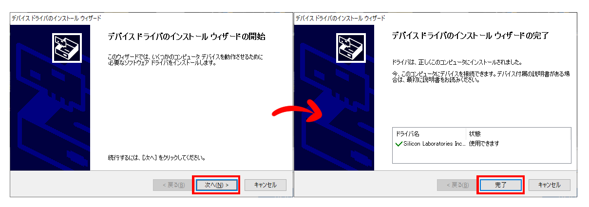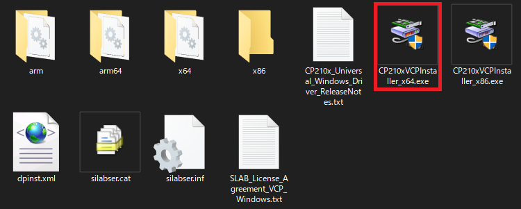 64bitの場合、CP210xVCPInstaller_x64.exeを実行