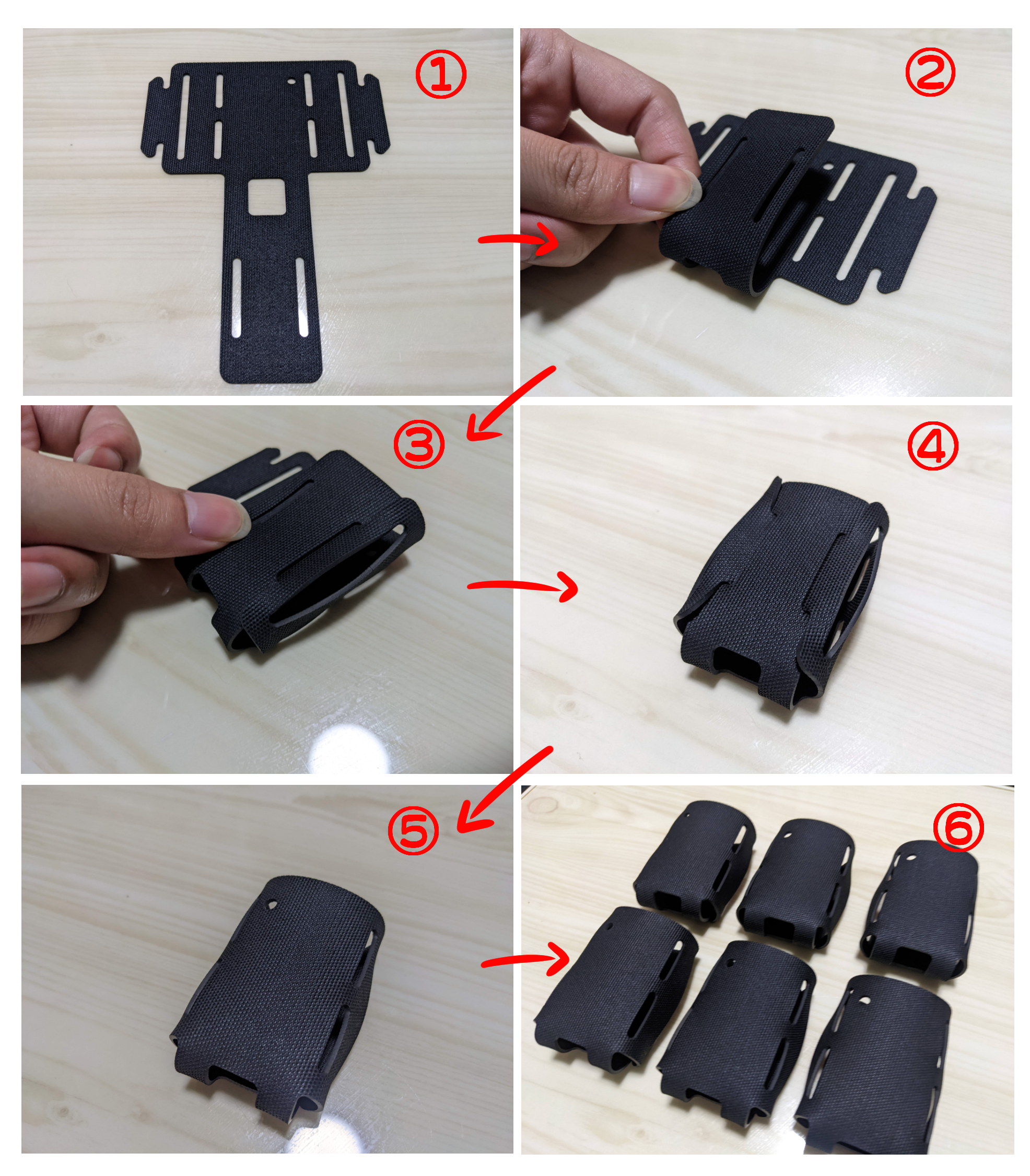 センサーホルダーのスリットからベルトを通し、端のリングに通して折り返したら完成です。