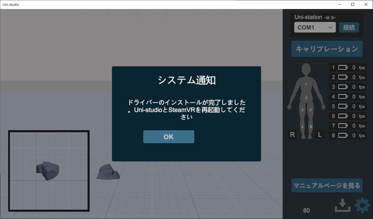 Uni-studio初回起動時はSteamVRドライバーのインストールが必要なため、その設定をしていきます。