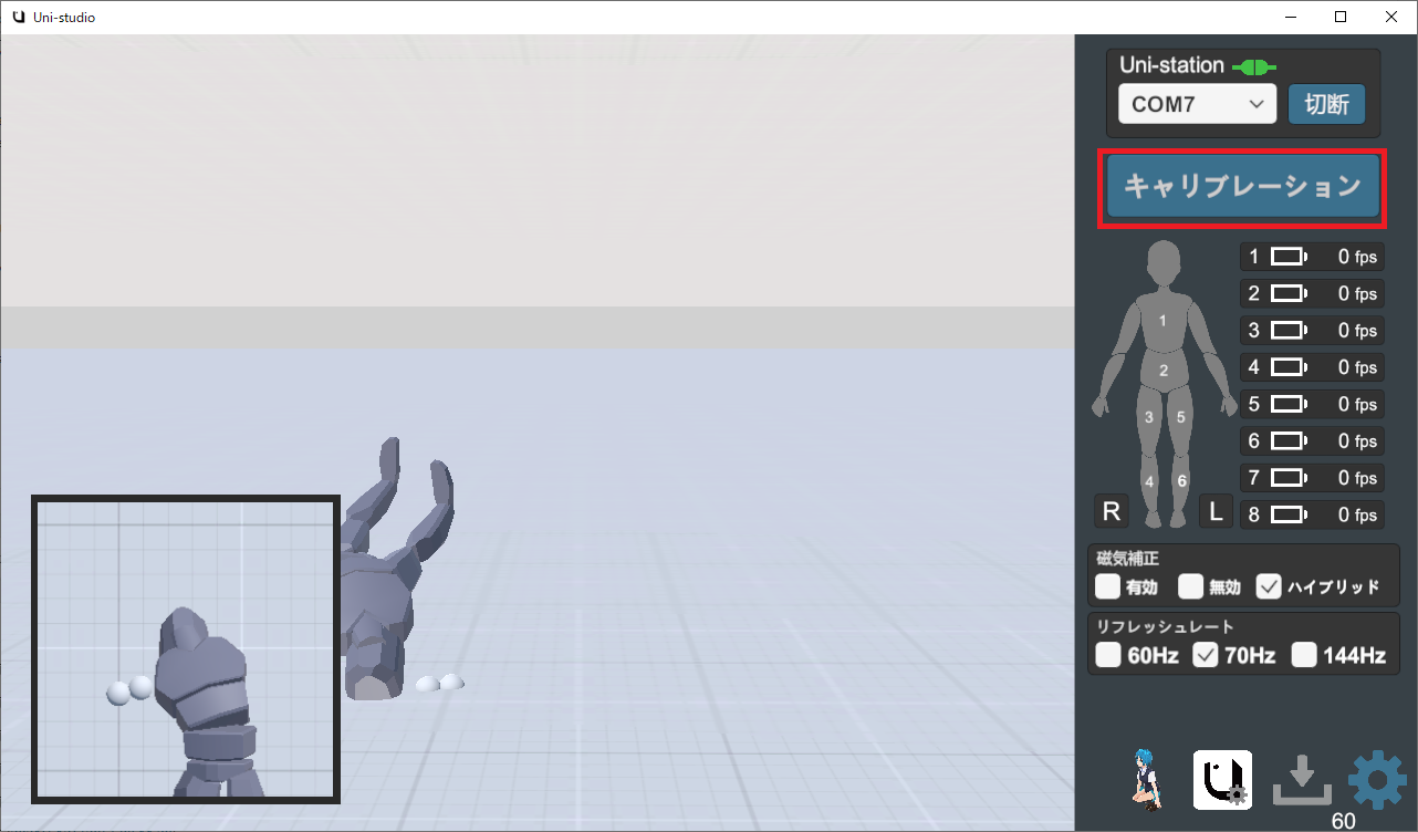 Un-motionのキャリブレーションには、Uni-studio上のキャリブレーションと、センサーキャリブレーションの実施方法があります。