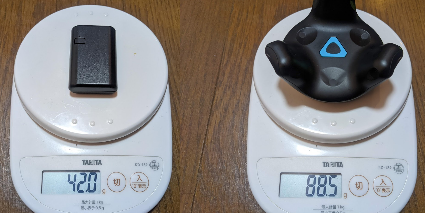 Uni-sensorは42g(電池込み)、Viveトラッカー2.0は88.5g