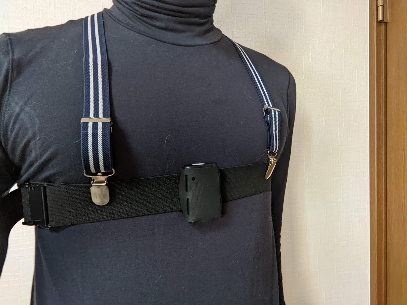 それに比べてUni-motionはベースステーションを必要としない分出っ張る必要もなく本体の小ささも相まってベルトの一部として体に取り付けられる。