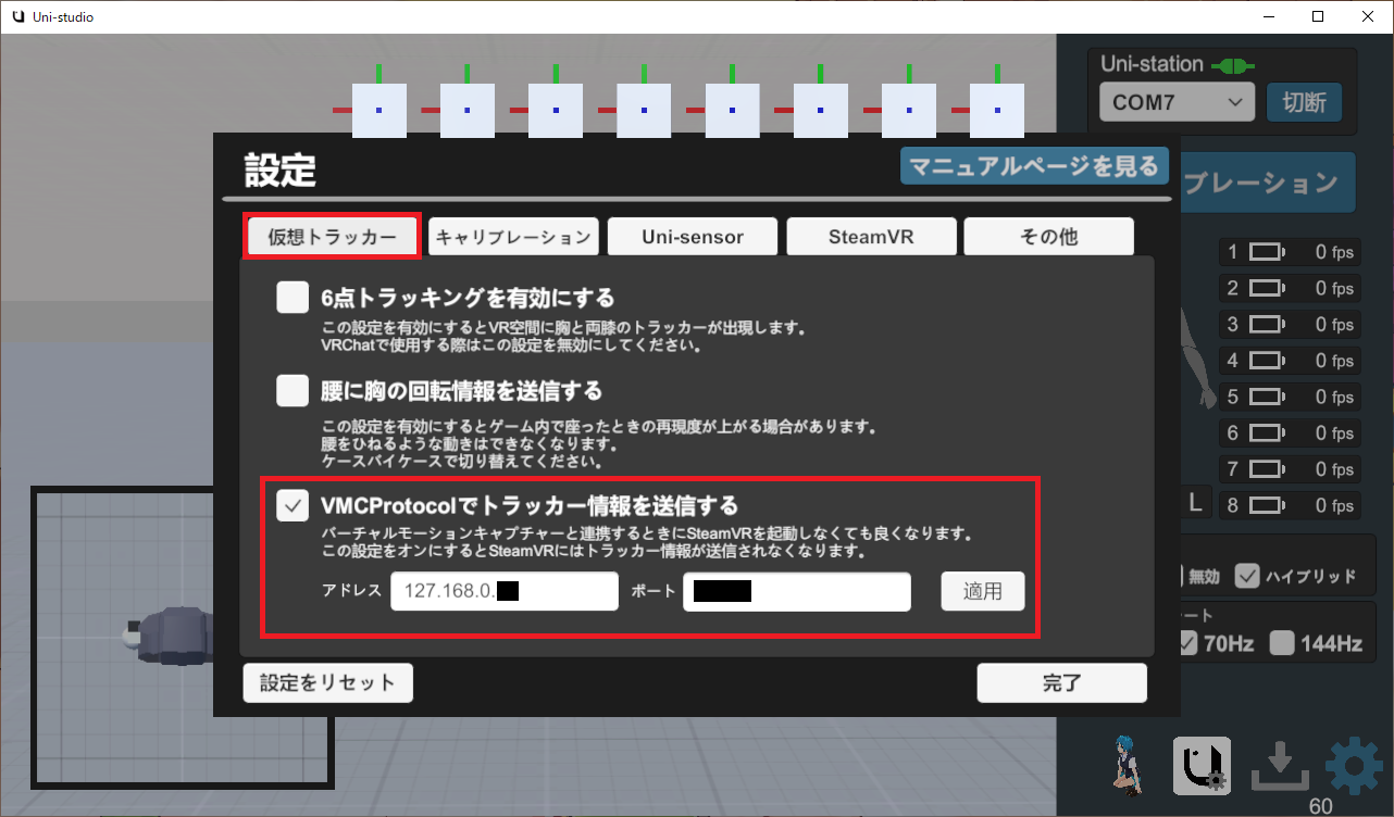 これがVMCにUni-motionトラッキング情報を送る項目になります。