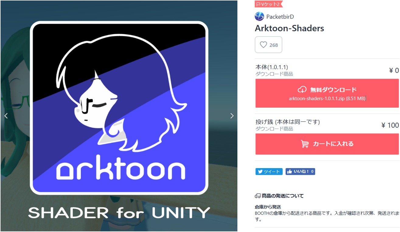 ますは今回の主役の”Arktoon-Shaders v1.0.1.1”(synqark様制作)をダウンロードしてきましょう。