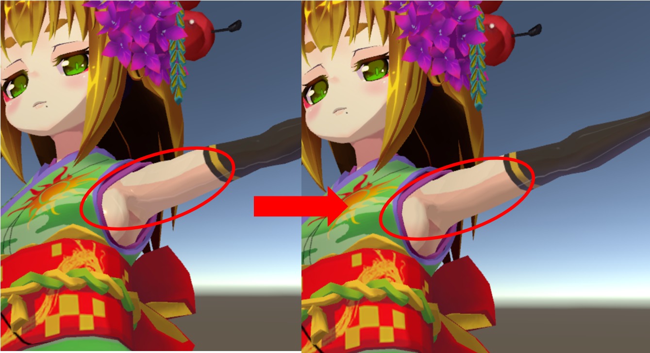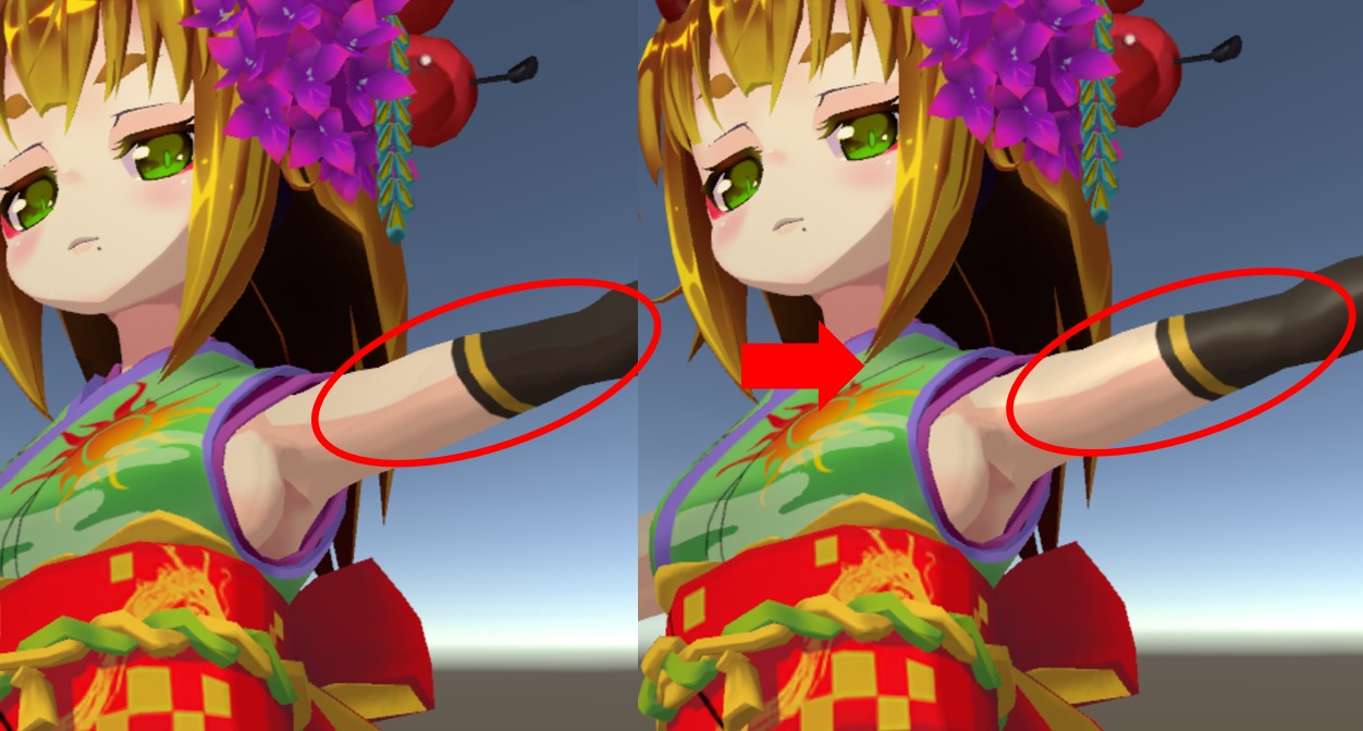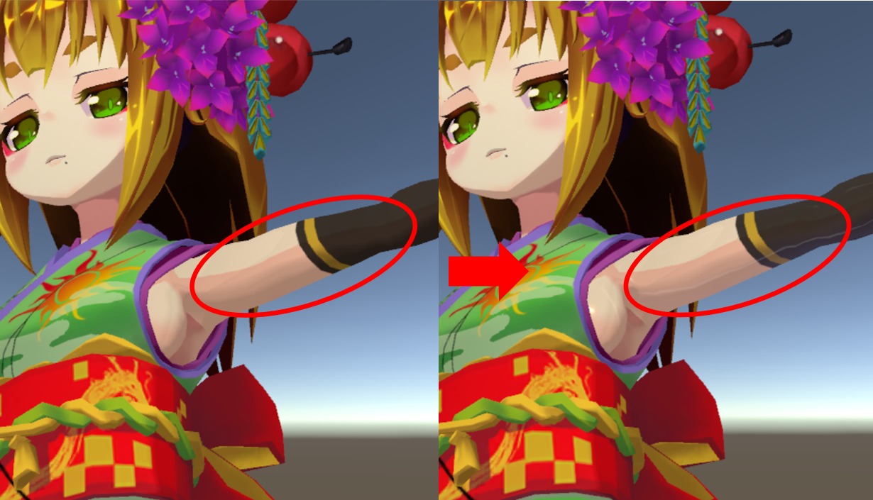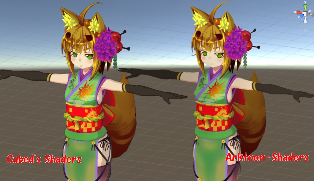 使用マテリアルを全部Arktoonに-Opaqueに変更しCubedと比較したものが以下になります。