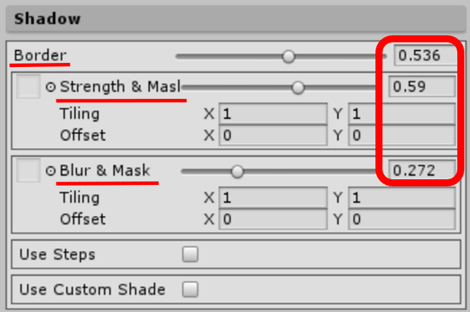 影(Shadow)と同じくスライダーをいじりながら設定していきます。