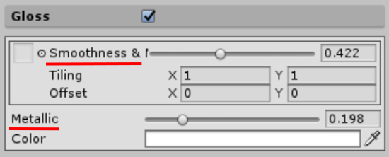 今回、主に設定するのが”Smoothness&Mask”,”Metallic”です。