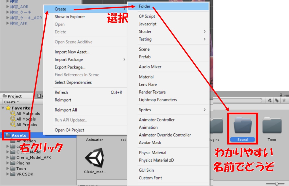 まずは、Unity側で音源ファイルを入れるフォルダを作っておきましょう(わかりやすくするため)