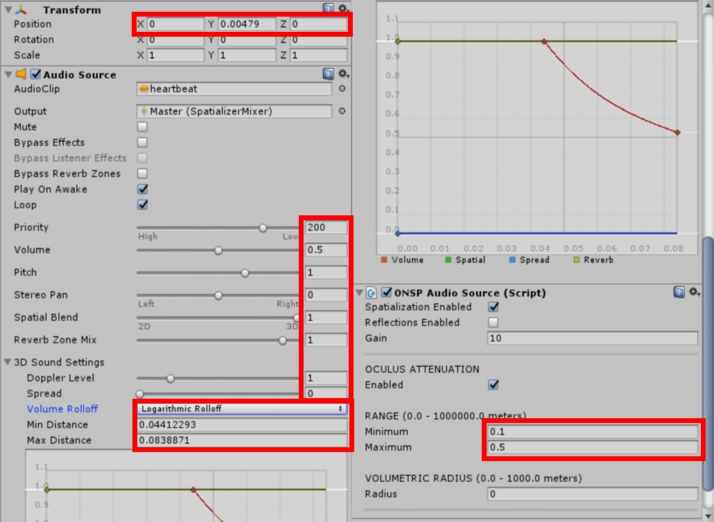私は胸の中心に近づくと心音が聞こえるようにしたかったので以下のような設定値を入れました。