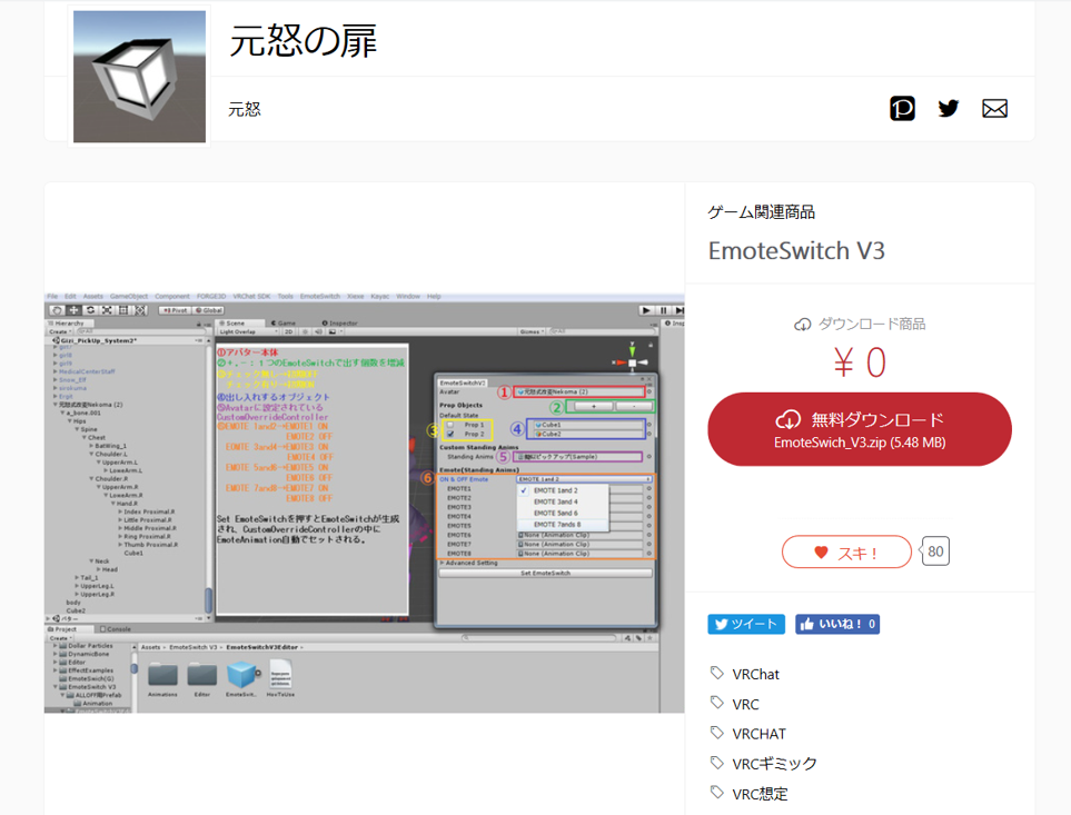 また、玄人向けのEmoteSwitchV3のPrefabもあるそうなので、そちらも使ってみてください♪