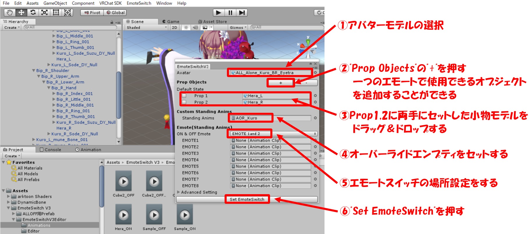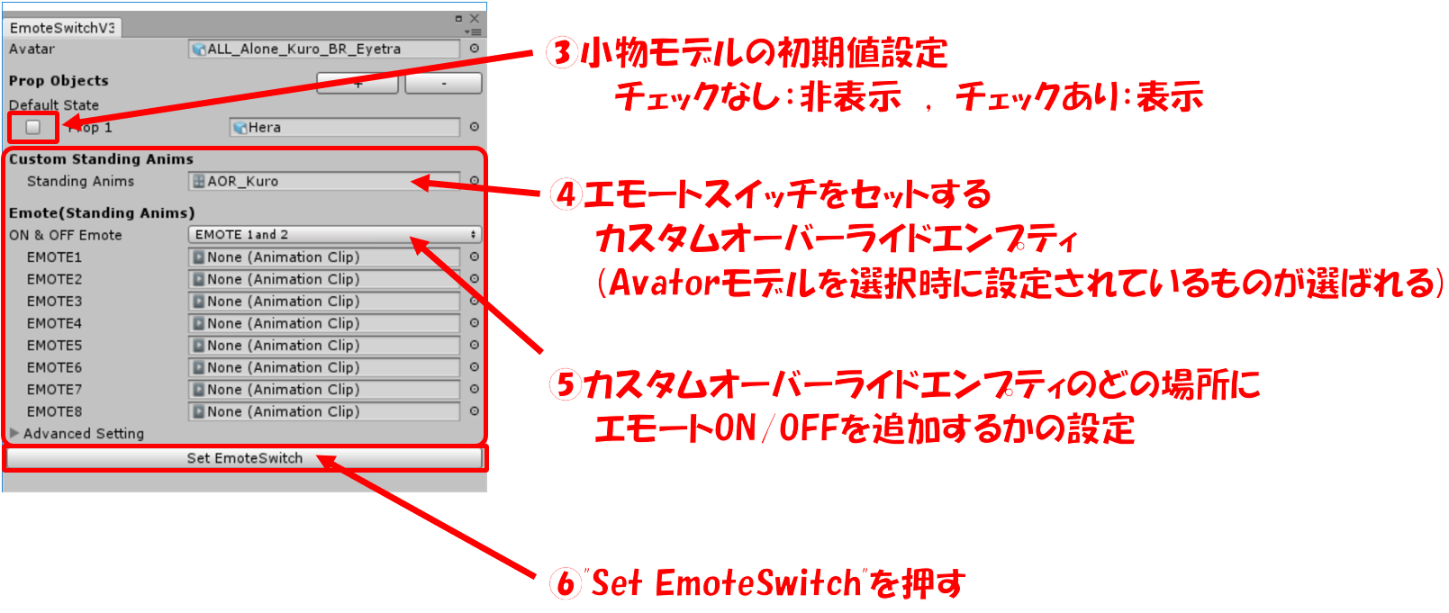 ⑥”Set EmoteSwitch”を押す