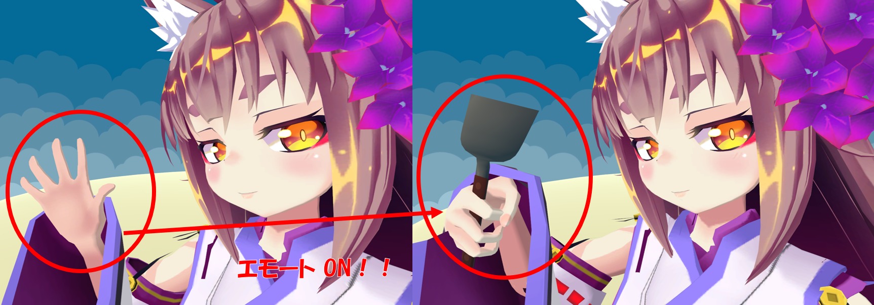 エモートスイッチを使うことでアバター自体に色々な仕掛けを追加することもできるため