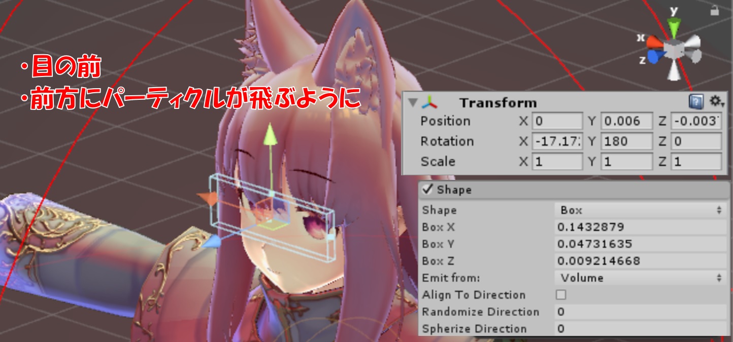 次にパーティクルの発生させたい向きと位置を決めていきます。